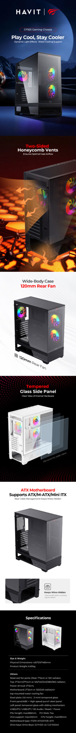 With smart cable management design and a clean internal layout, the HAVIT CF925 ensures both performance and a tidy appearance.