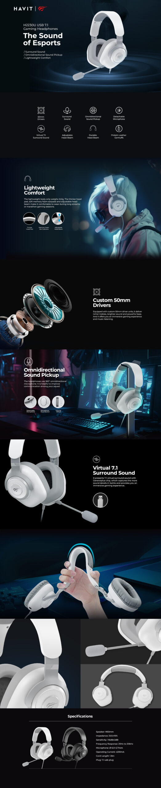 With USB plug-and-play compatibility, the HAVIT H2230U is ready to perform the moment you connect it — delivering the sound of esports directly to your setup.