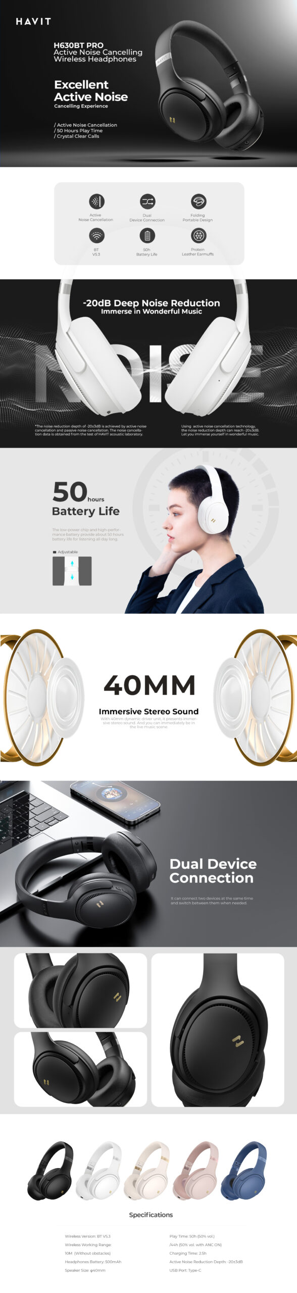 Immerse yourself in crystal-clear sound and peace with the HAVIT H630BT PRO.