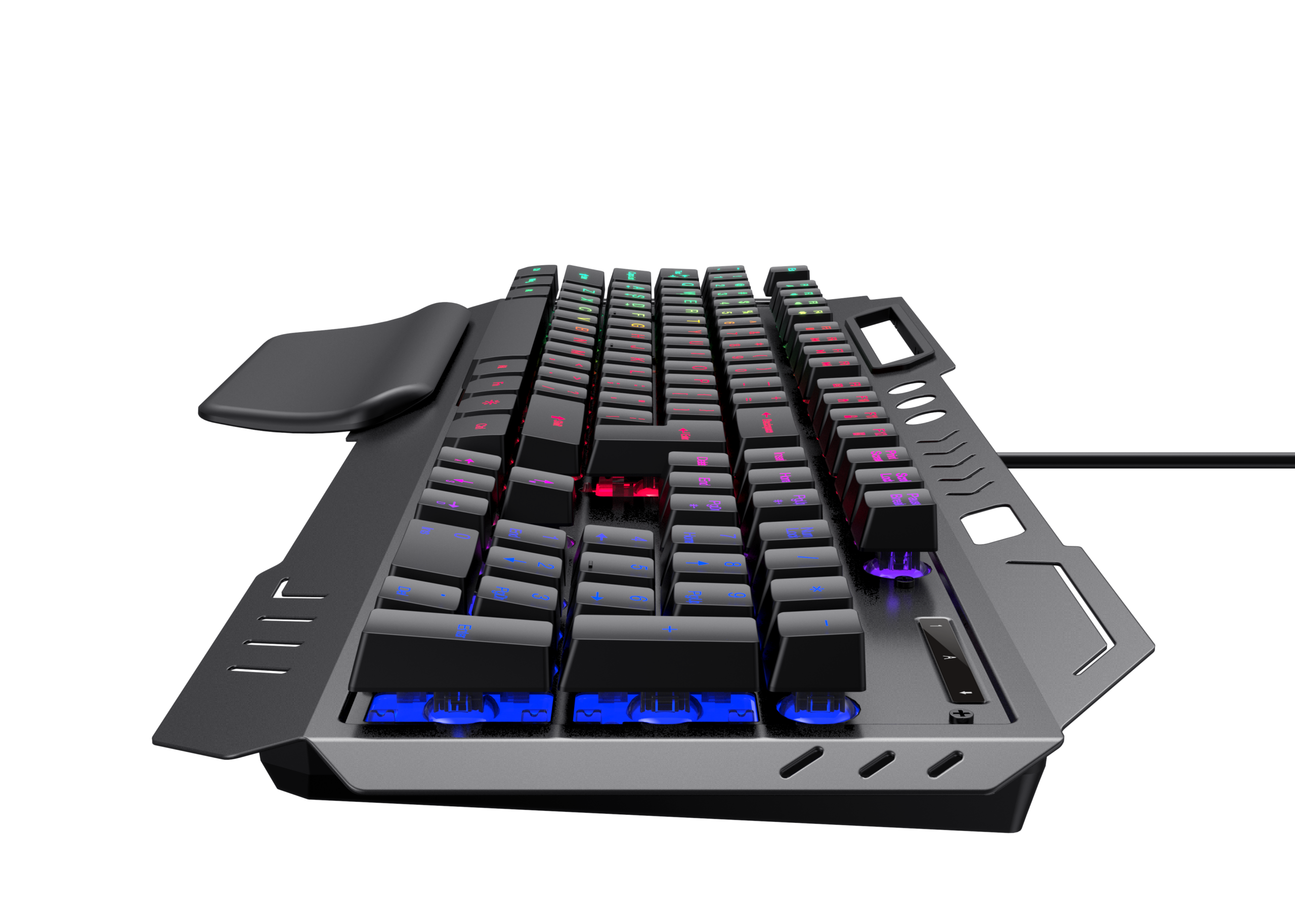 Its metal top panel adds strength and stability, while the ergonomic wrist support ensures a natural hand posture that reduces fatigue during extended use.