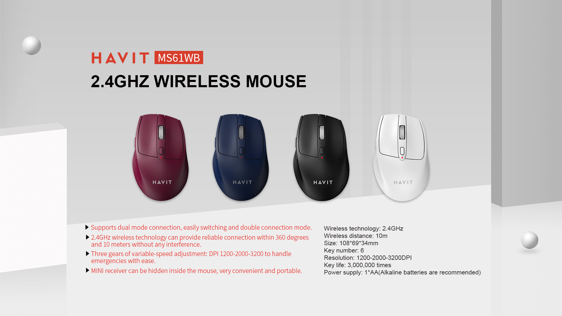 With a durable key lifespan of 3,000,000 clicks and power efficiency supported by a single AA battery, the HAVIT MS61WB delivers long-lasting performance in a lightweight and stylish design.