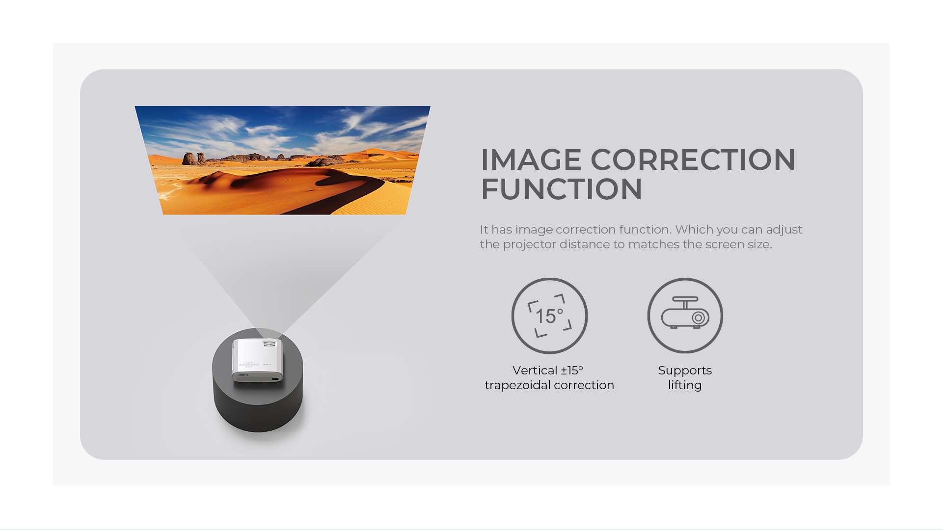 With automatic image correction, you can easily adjust projection angles and achieve a perfect rectangular display.