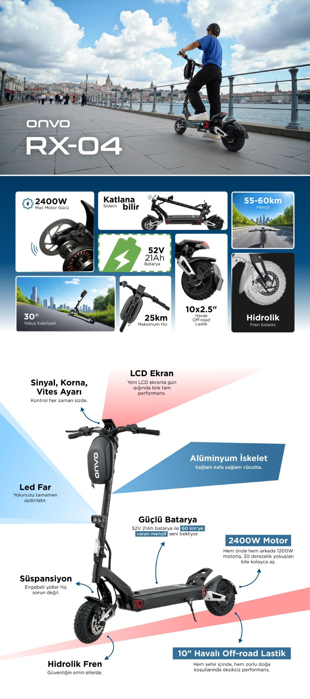 If you’re searching for a high-power, long-range electric scooter with premium braking and off-road capability, the ONVO 2400W Dual Motor Electric Scooter is the ultimate choice.