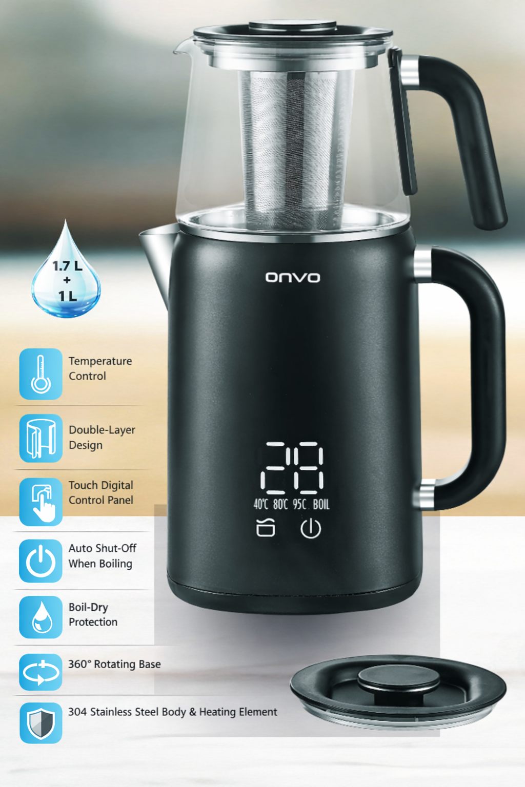 With its dual capacity design (1.7L + 1L), this kettle is ideal for both family use and personal needs. The touch digital control panel allows precise temperature control, while the automatic shut-off and boil-dry protection provide maximum safety.