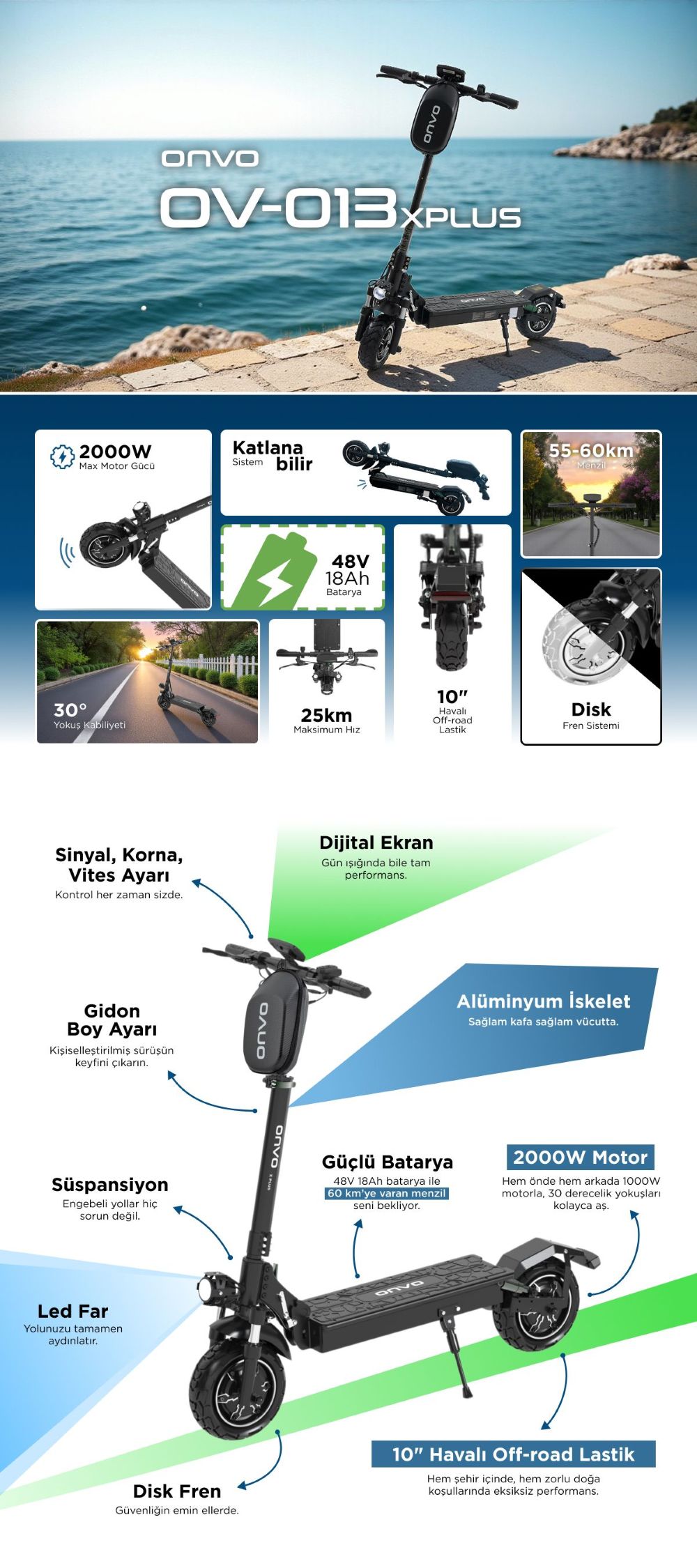 If you’re looking for a high-performance, long-range electric scooter with rugged off-road capability, the ONVO OV-013 XPLUS is the ultimate choice.