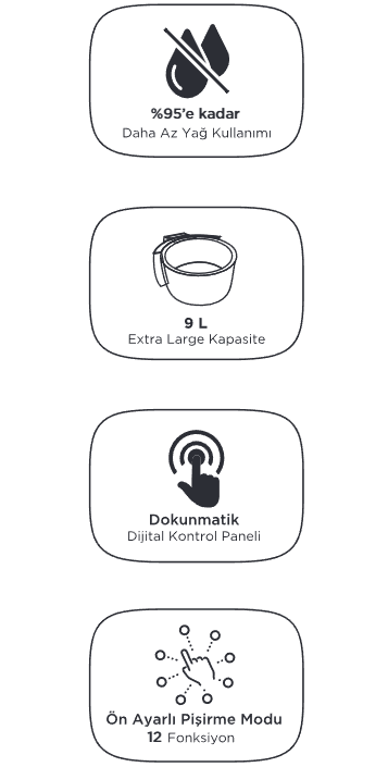 The air fryer includes 12 preset cooking modes, making it easy to cook a variety of foods such as fries, chicken, meat, fish, vegetables, and baked dishes with a single touch. Thanks to its advanced air technology, it delivers up to 95% lower oil usage, helping you enjoy healthier meals without sacrificing taste.