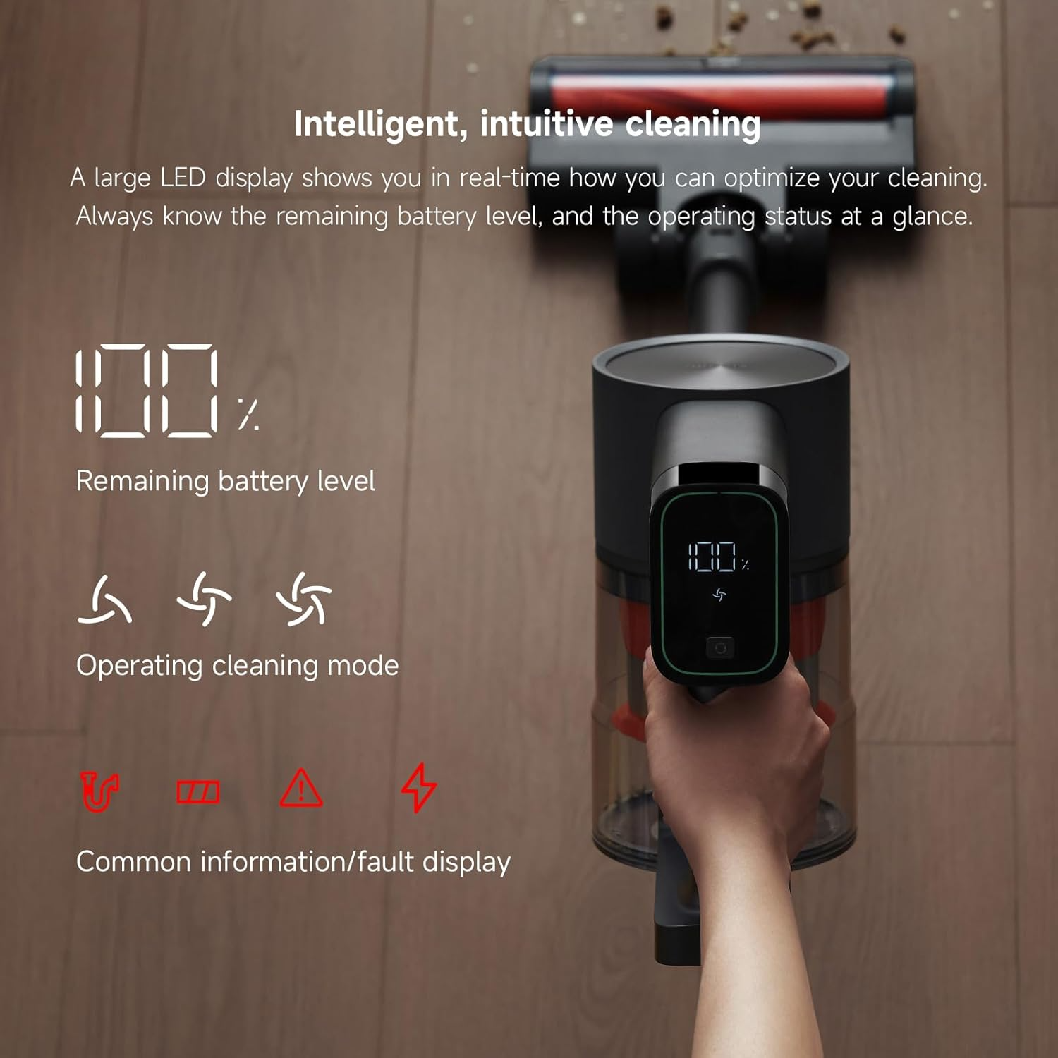 - Ultra-long battery life: Long-lasting support for all your cleaning needs. A 7 built-in large-capacity battery packs and 3 cleaning modes, clean the whole house in one go. Easily tackles sprawling homes, multi-story stairs, or post-party chaos with unstoppable 45-minute runtime (Standard mode)